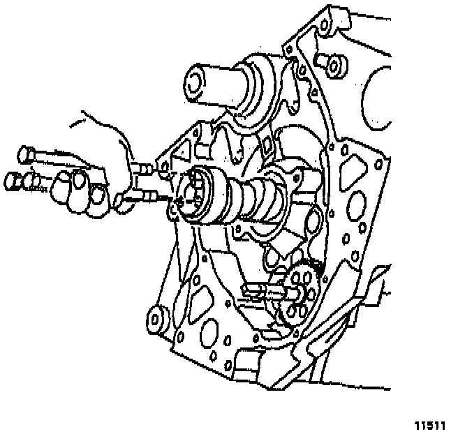 CAUTION: All camshaft journals are the same diameter, so care must be used in removing the camshaft to avoid damage to the bearings.