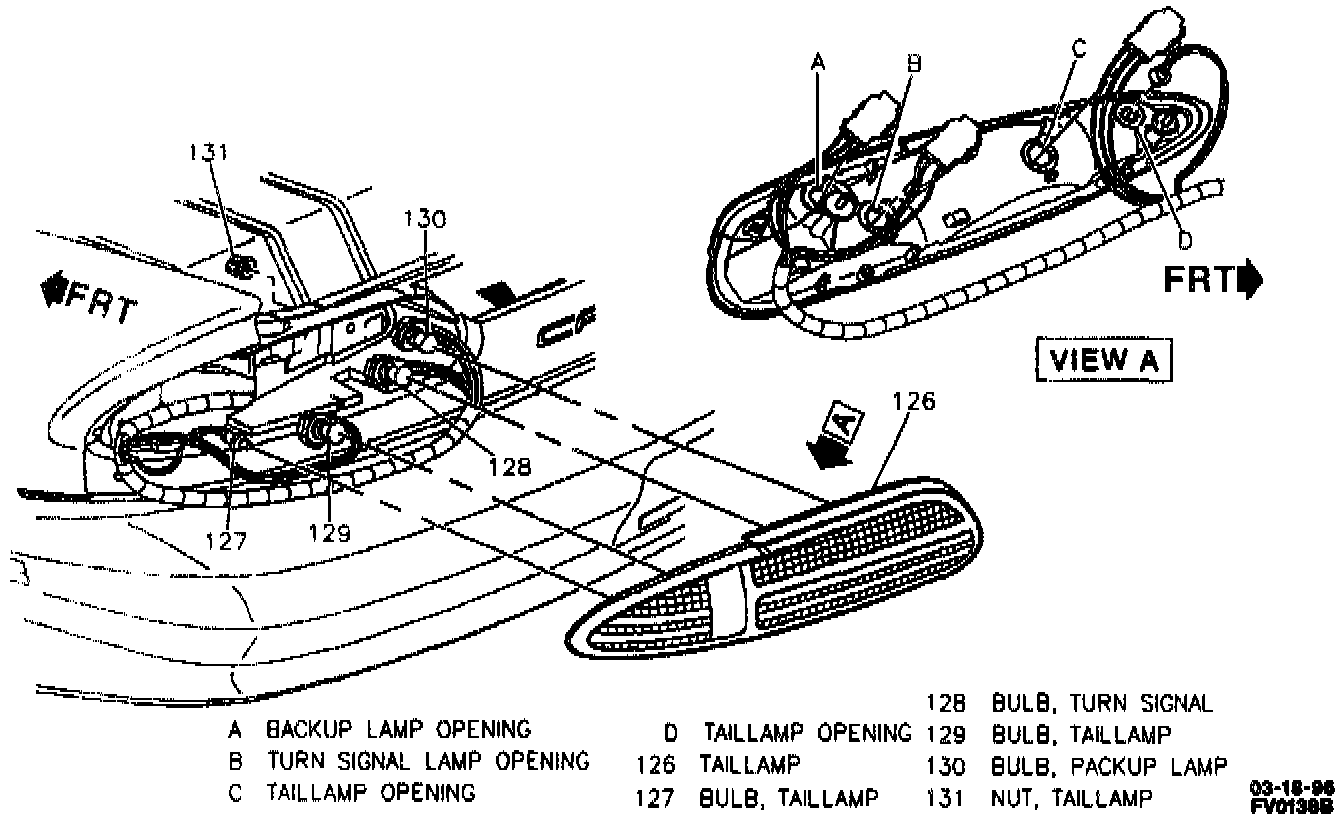 1. Taillamp, turn signal and backup lamp bulbs 127, 128. 129 and 130) to sockets.