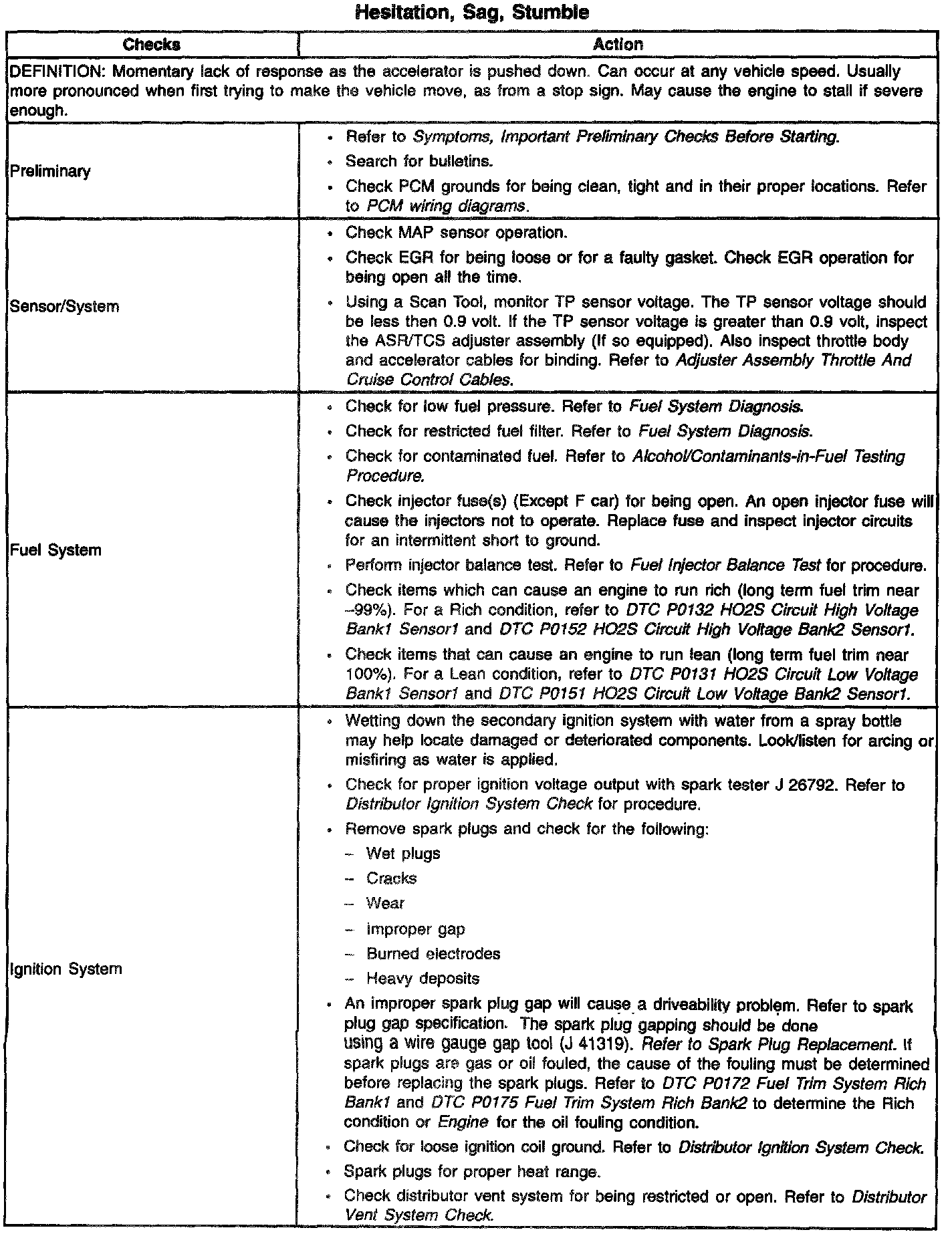 Hesitation, Sag, Stumble