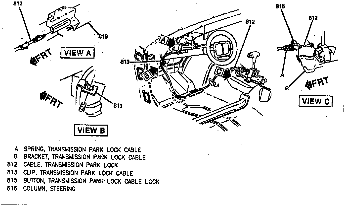e. If key cannot be removed in "PARK" position, move park lock cable lock button (815) to "UP" position and move cable connector nose rearward until ignition key can be removed.