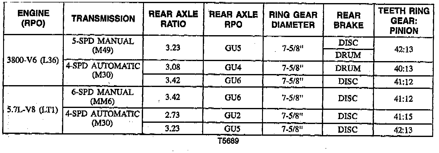 Rear Axle Usage Chart