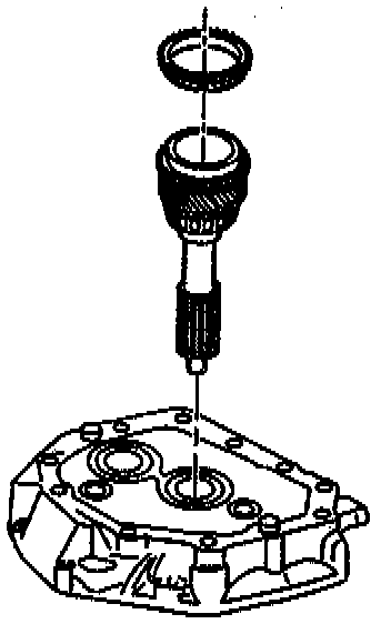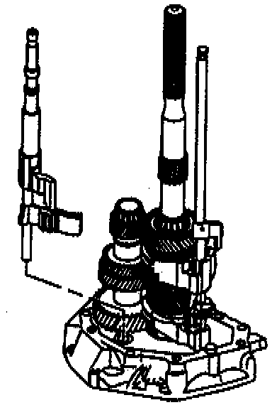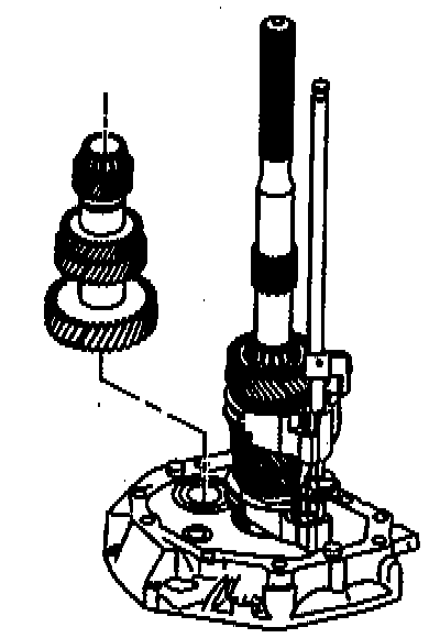 - Lift up mainshaft (23) enough to remove countershaft (105).