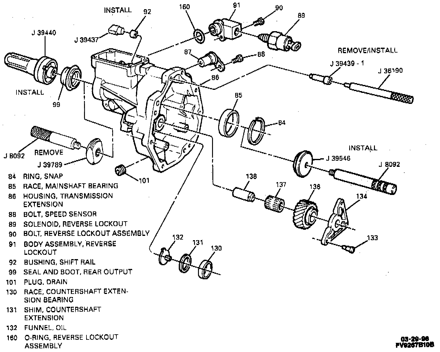 1. Shift rail bushing (92) using J 39437.