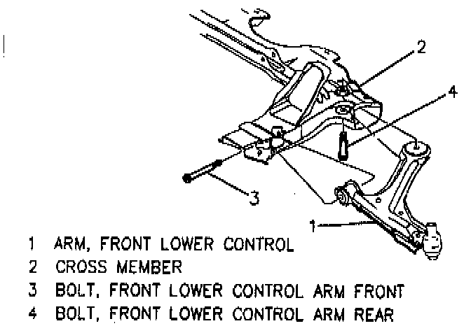 - Control Arm to Crossmember Bolts (Front Bushing) 120 Nm (89 ft. lbs.) plus 180° rotation