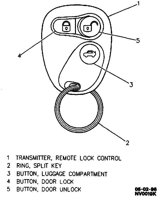The transmitter has three buttons and provides touch control of the following vehicle functions: