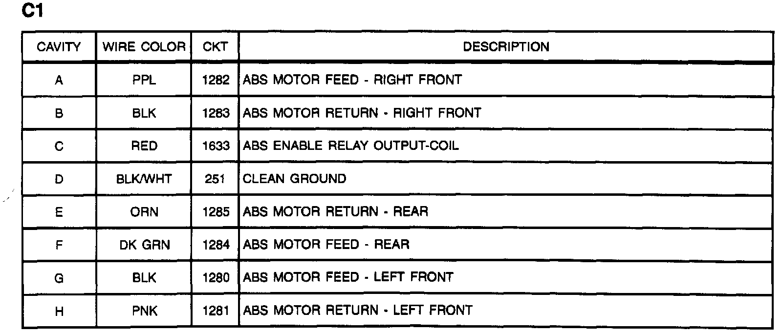 Electronic Brake Control Module (EBCM)l: C1:
