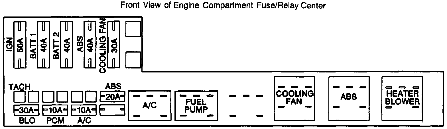 Front View Of Engine Compartment Fuse/Relay Center: