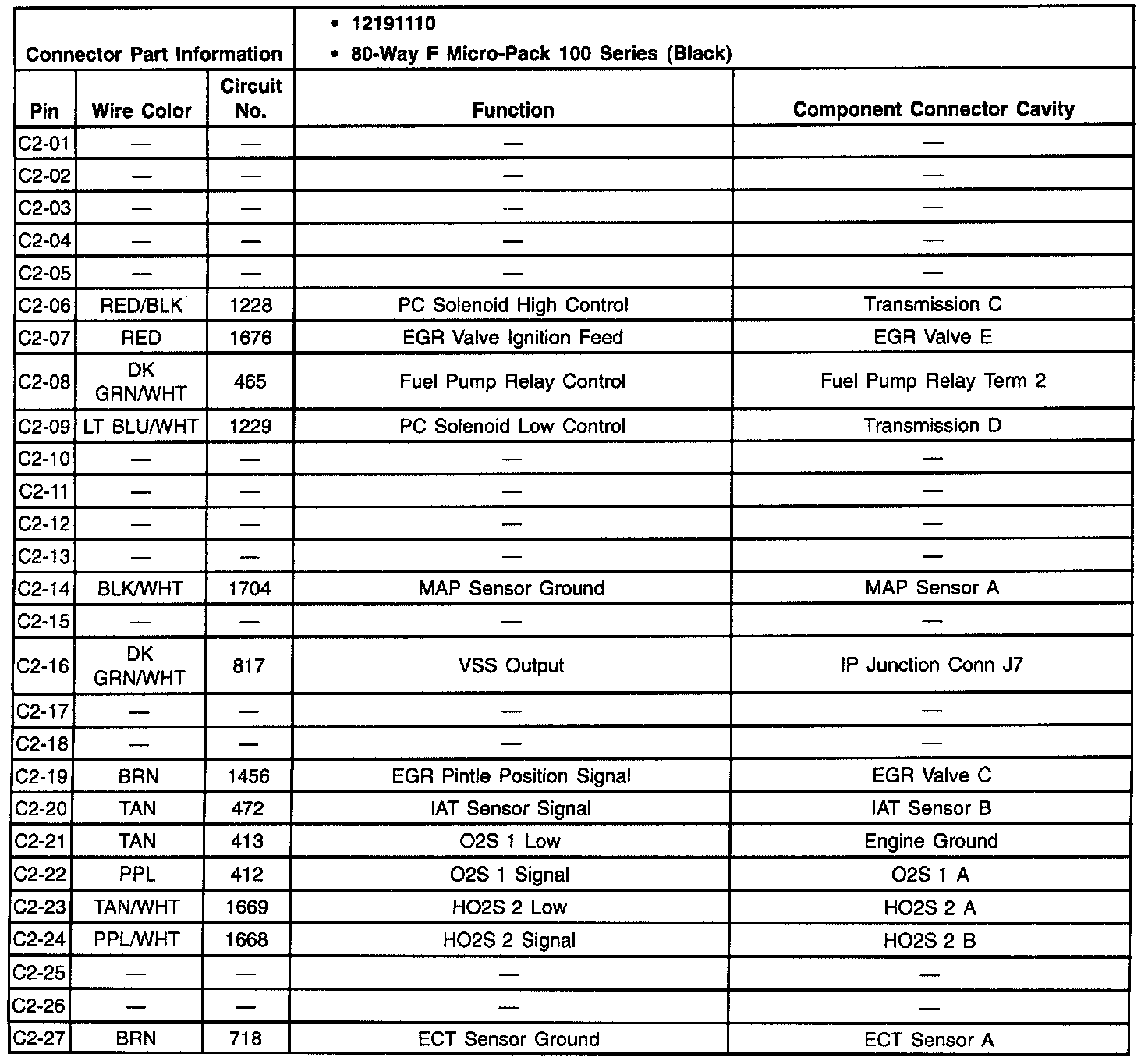 Connector Pin Information: