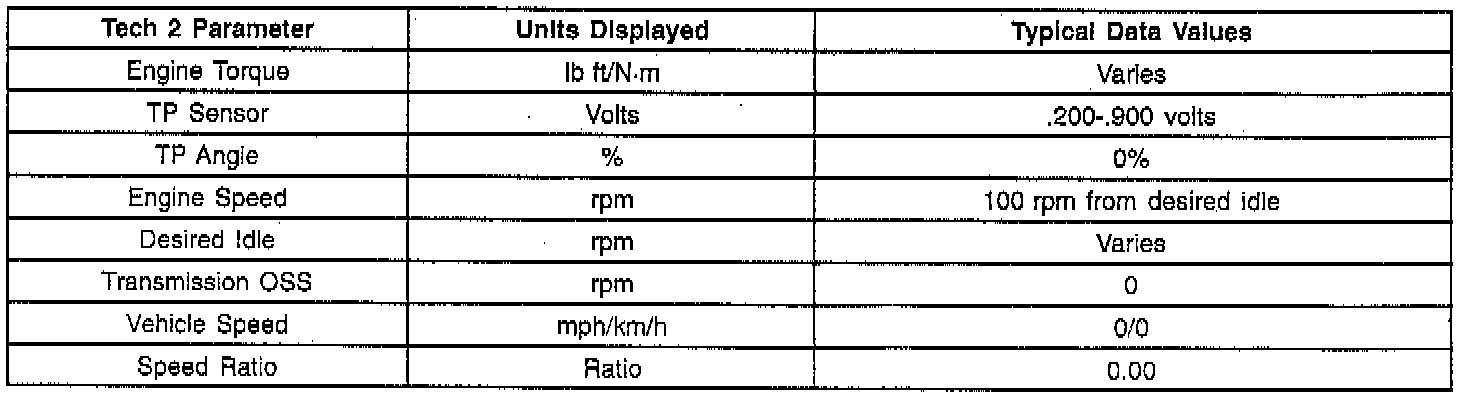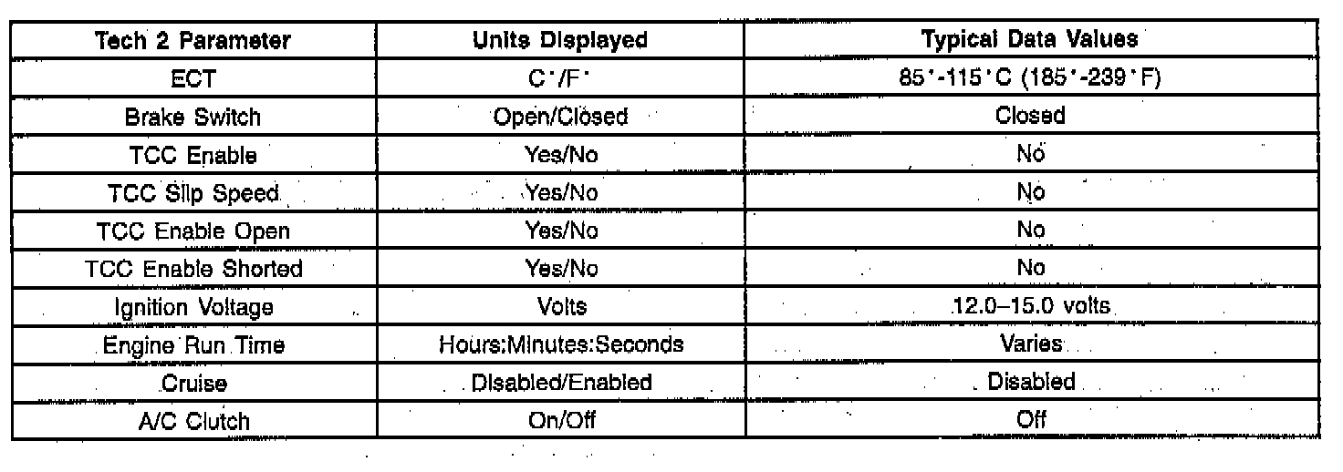 Only the parameters listed below are used in this manual for diagnosing. If a scan tool displays other parameters, the values are not recommended by General Motors for use in diagnosis. Scan values are performed under the following conditions: