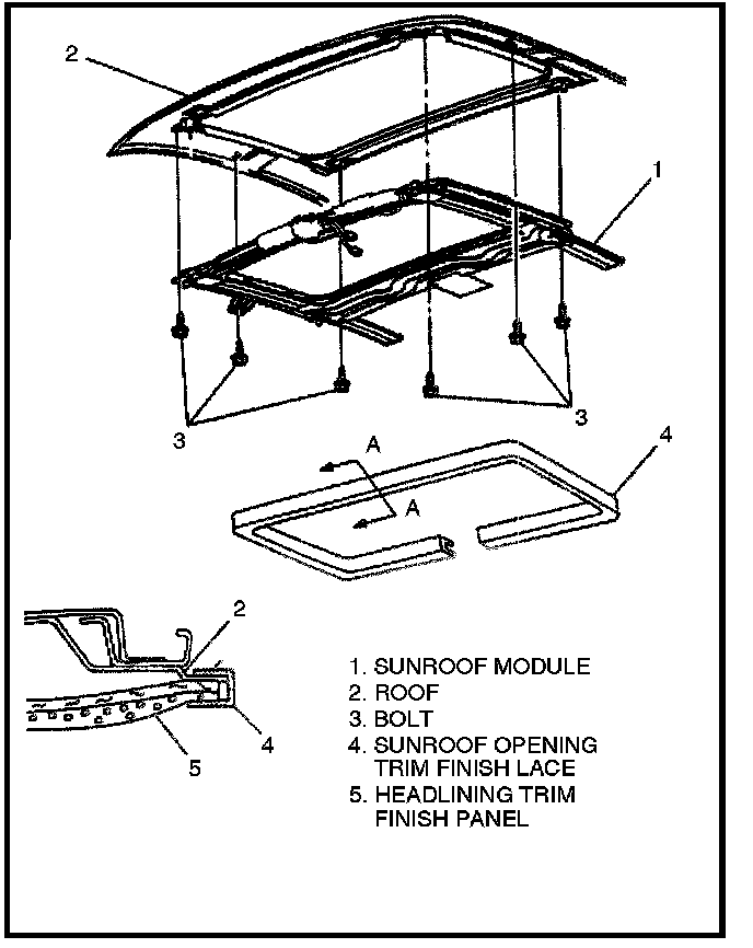 2. Sunroof opening trim lace.