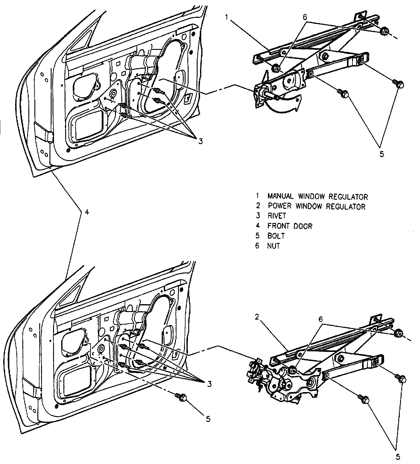 2. Door regulator rivets.