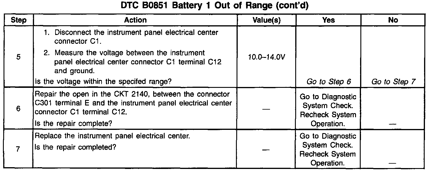 DTC B0851 Battery 1 Out Of Range (Part 2 Of 2):