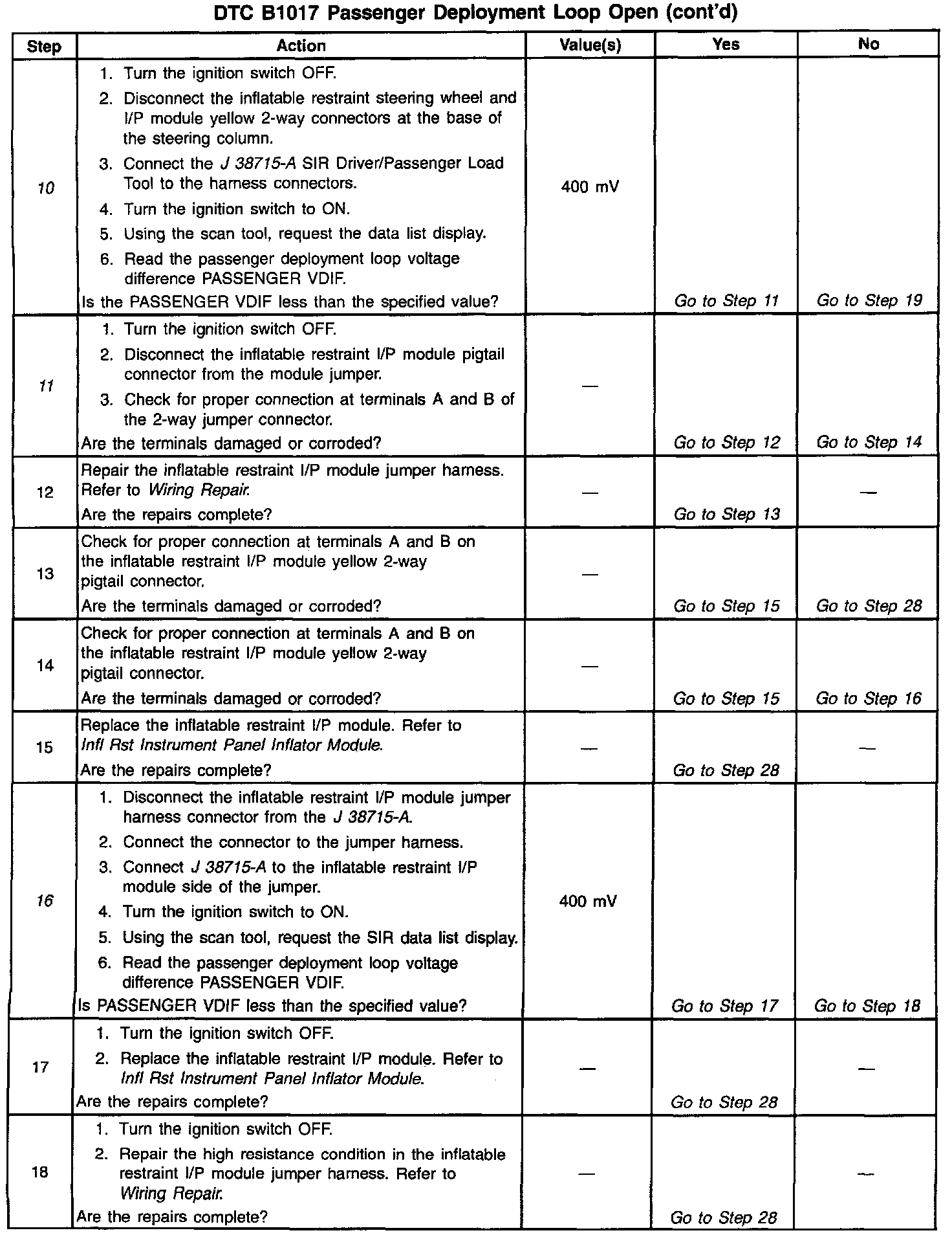 16. This test determines whether the malfunction is due to the inflatable restraint I/P module or the module jumper.