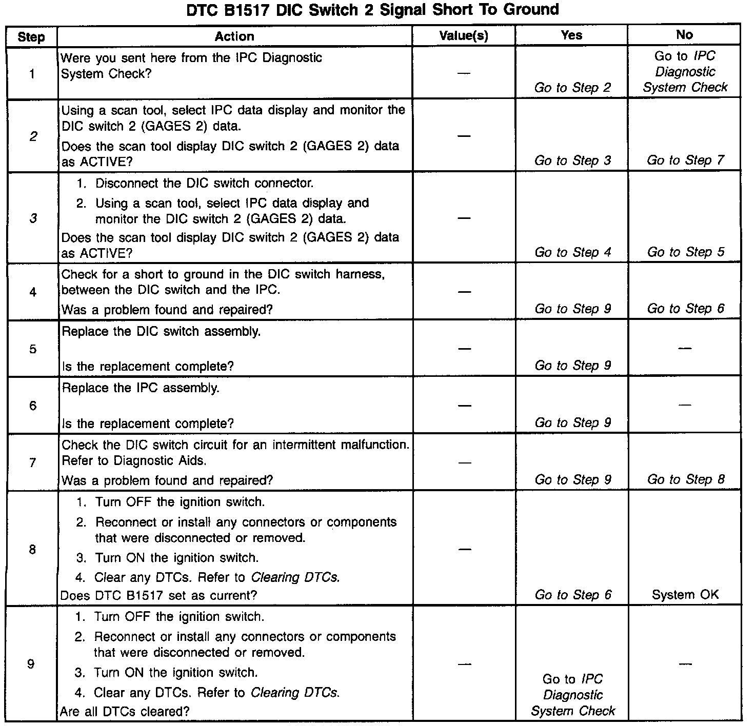 DTC B1517 DIC Switch 2 Signal Short To Ground: