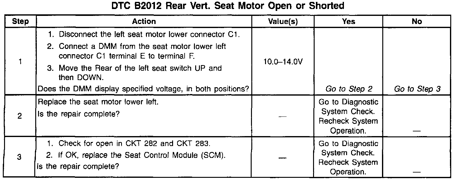 DTC B2012 Rear Vertical Seat Motor Open Or Shorted: