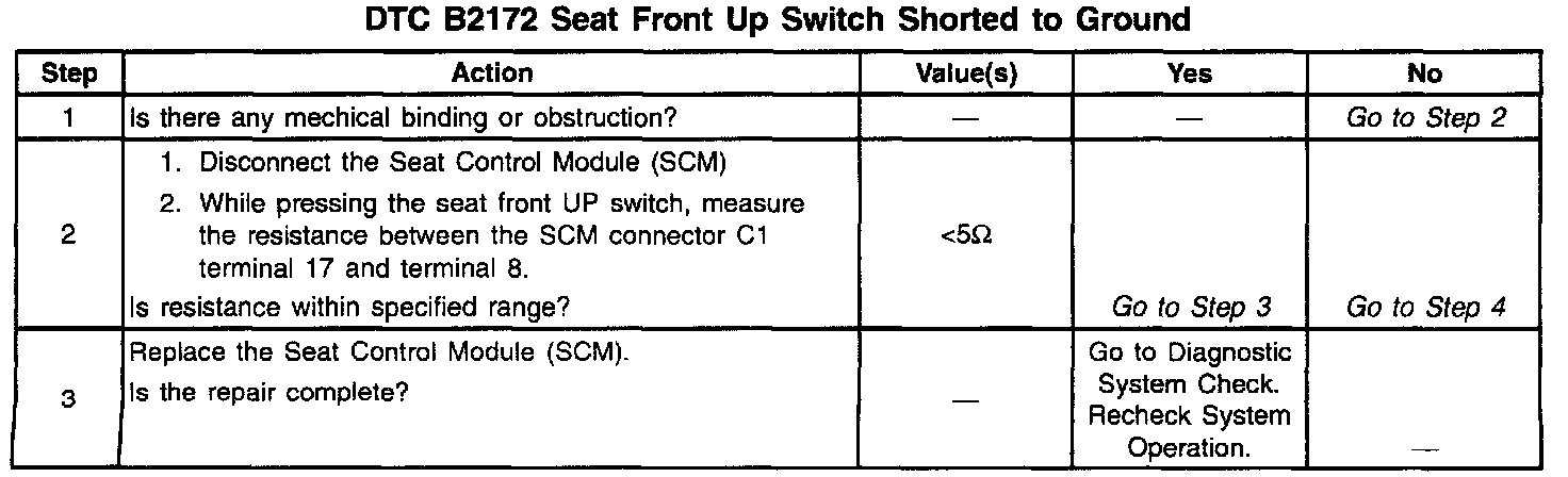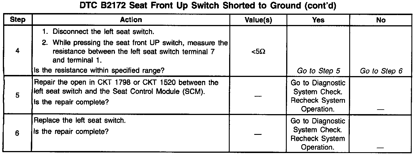 DTC B2172 Seat Front Up Switch To Ground (Part 2 Of 2):