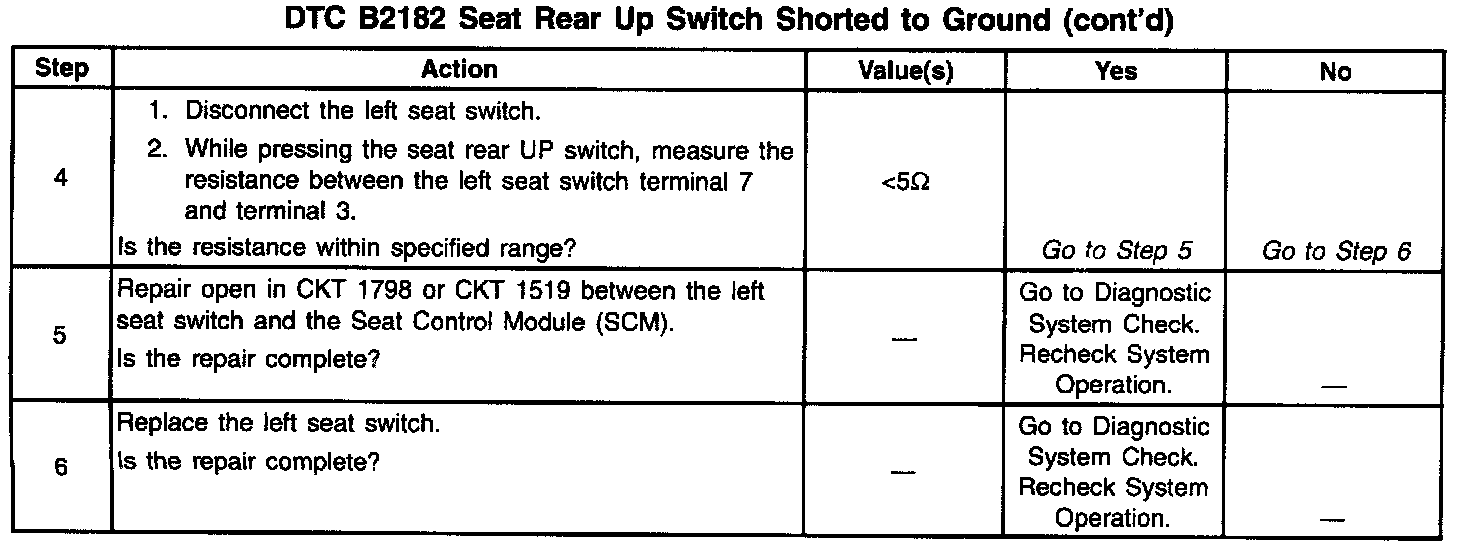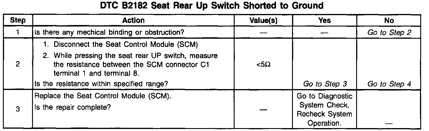 DTC B2182 Seat Rear Up Switch Shorted To Ground (Part 2 Of 2):