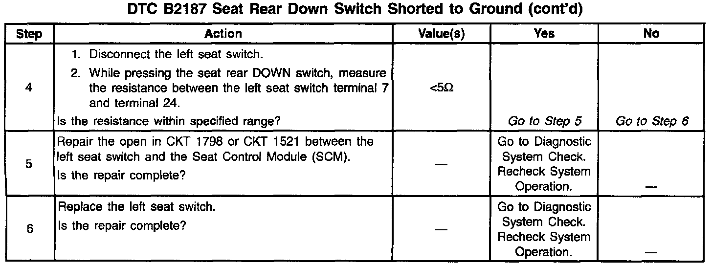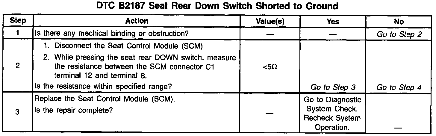 DTC B2187 Seat Rear Down Switch Shorted To Ground (Part 2 Of 2):