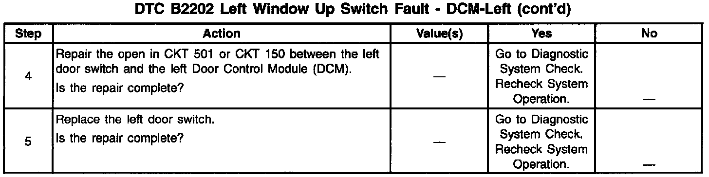 DTC B2202 Left Window Up Switch Fault: DCM-Left (Part 2 Of 2):