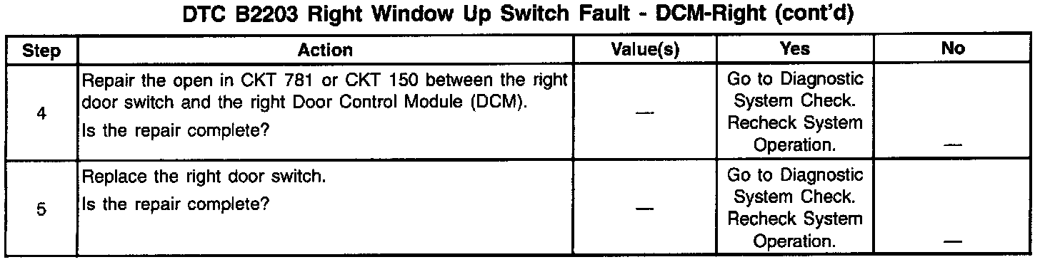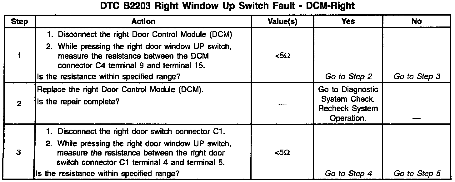 DTC B2203 Right Window Up Switch Fault: DCM-Right (Part 2 Of 2):