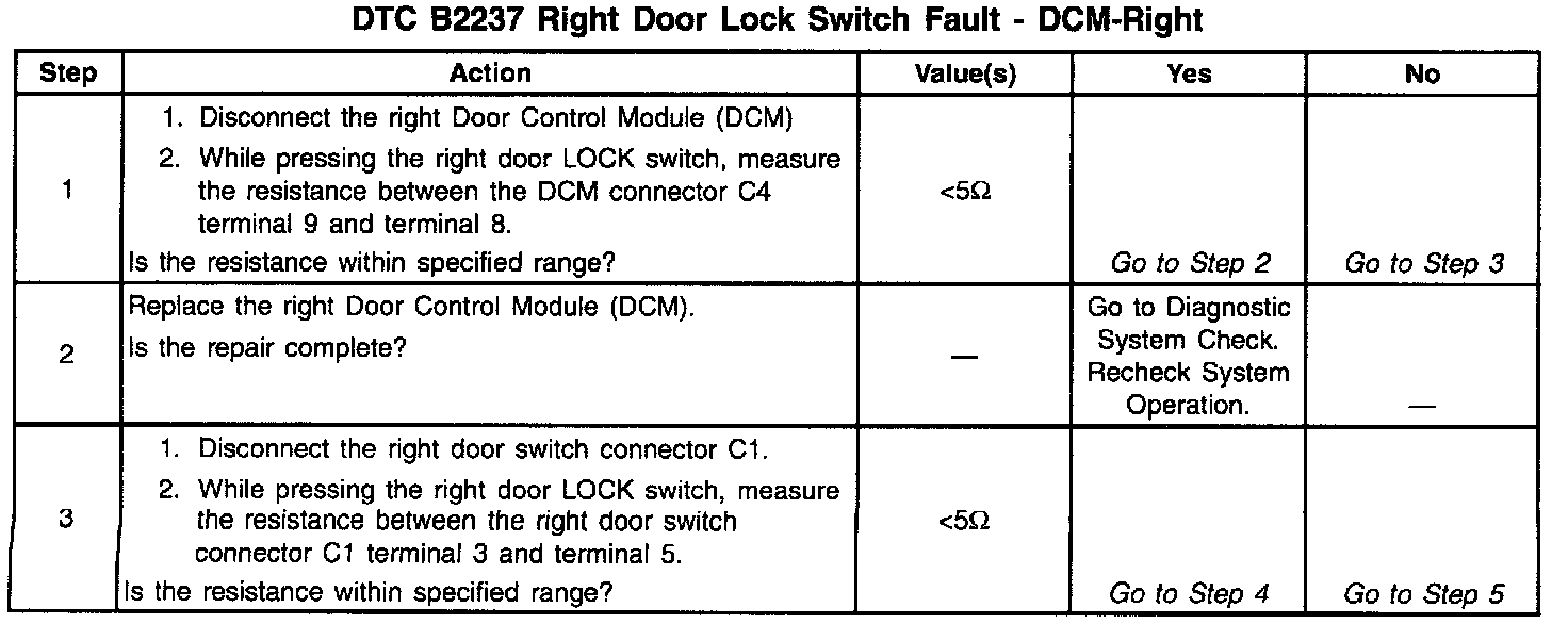 DTC B2237 Right Door Lock Switch Fault: DCM-Right: