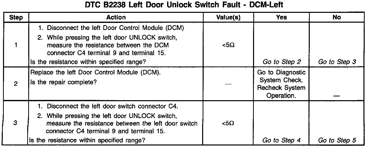 DTC B2238 Left Door Unlock Switch Fault: DCM-left (Part 2 Of 2):