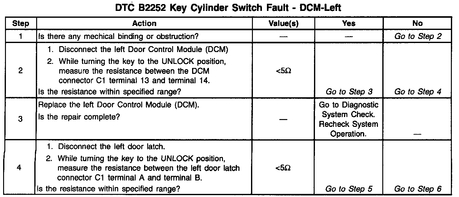 DTC B2252 Key Cylinder Switch Fault: DCM-Left (Part 2 Of 2):