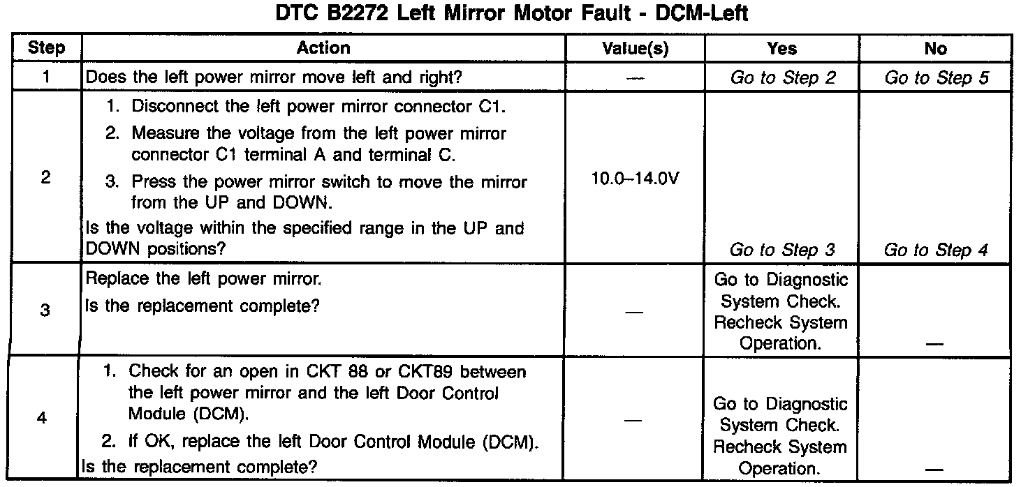 DTC B2272 Left Mirror Motor Fault: DCM-Left: