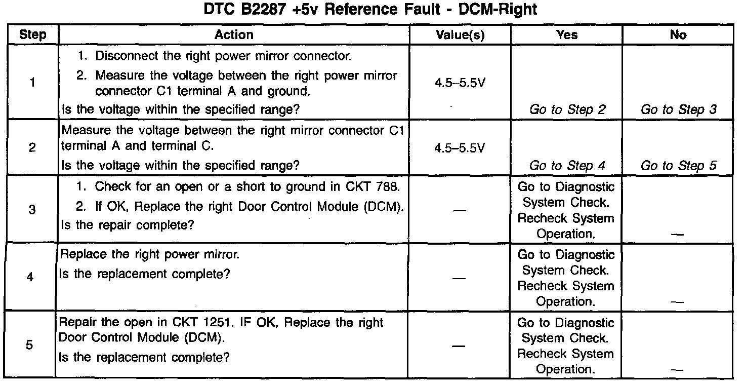 DTC B2287 +5v Reference Fault: DCM-Right:
