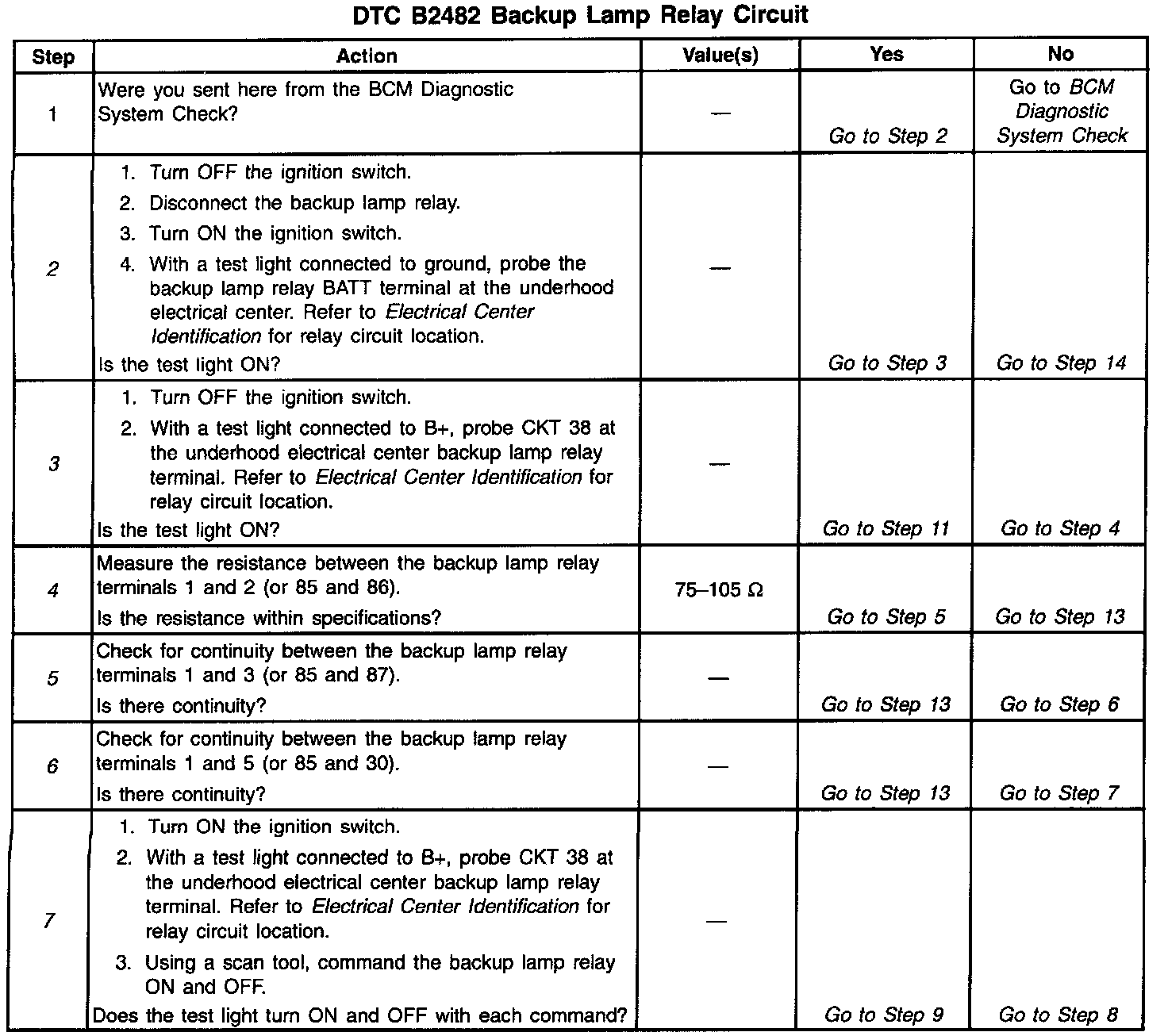 7. This test checks if the BCM can properly control the backup lamp relay by commanding the BCM to ground CKT 38.