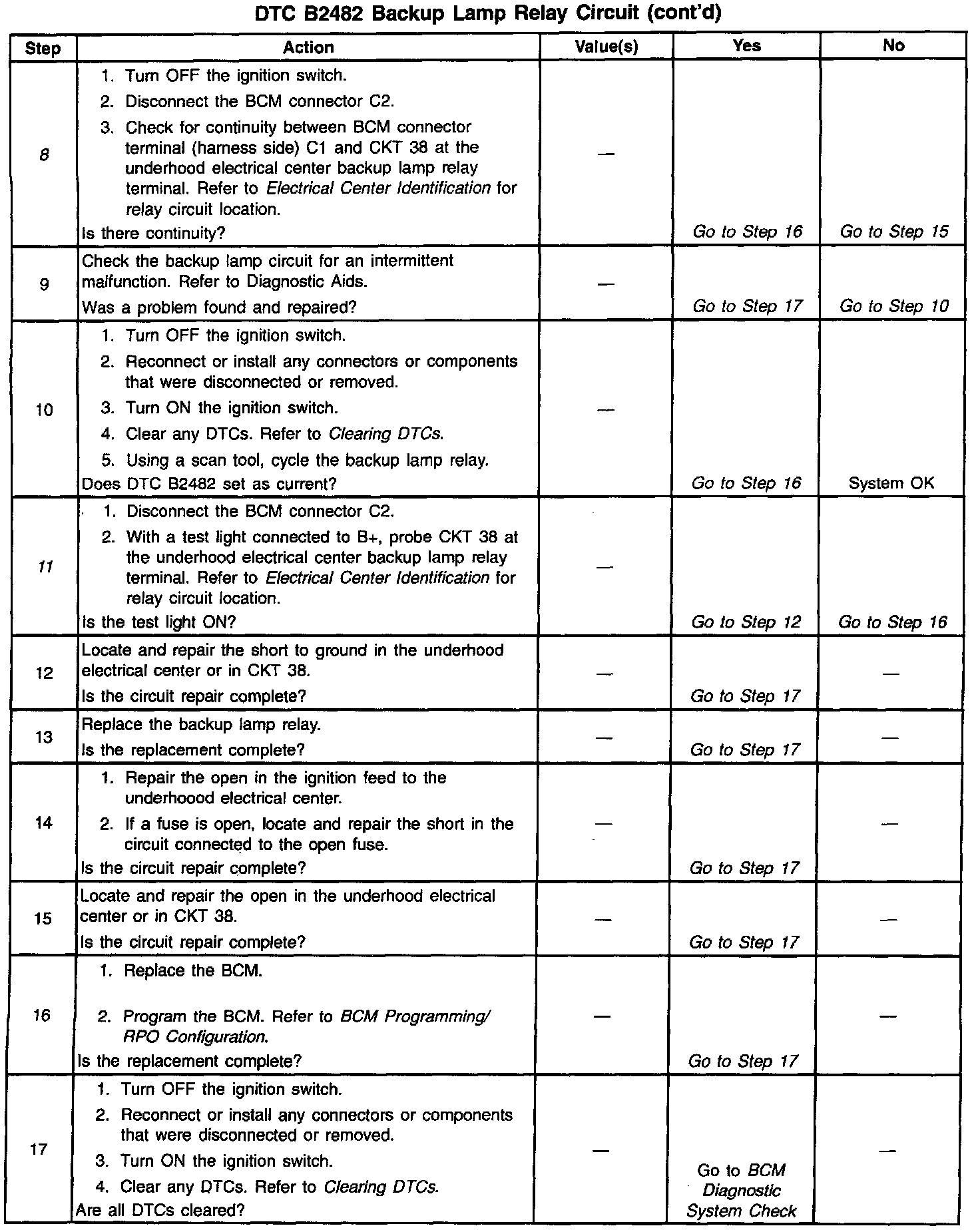 DTC B2482 Backup Lamp Relay Circuit (Part 2 Of 2):