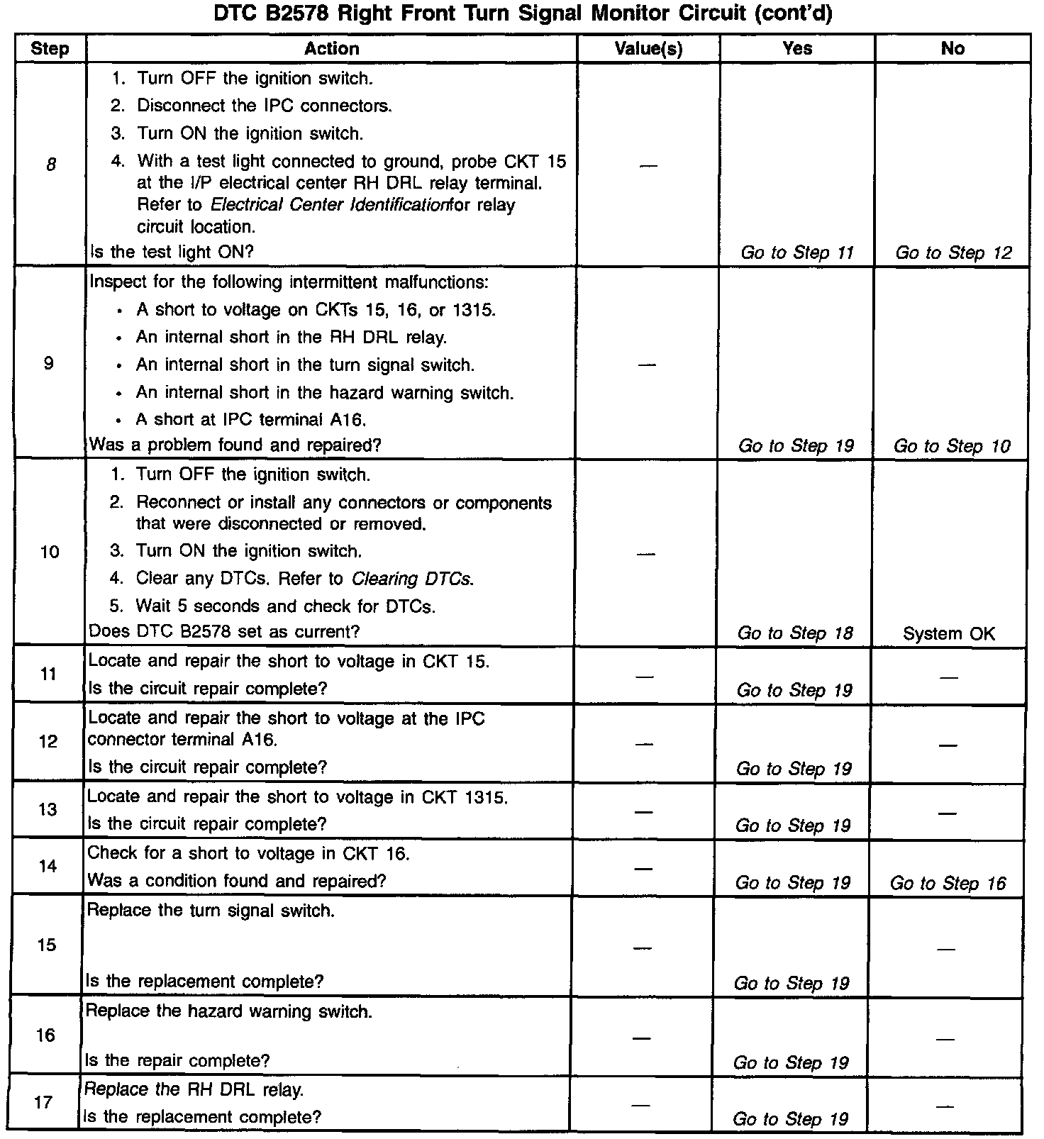 DTC B2578 Right Front Turn Signal Monitor Circuit (Part 3 Of 3):