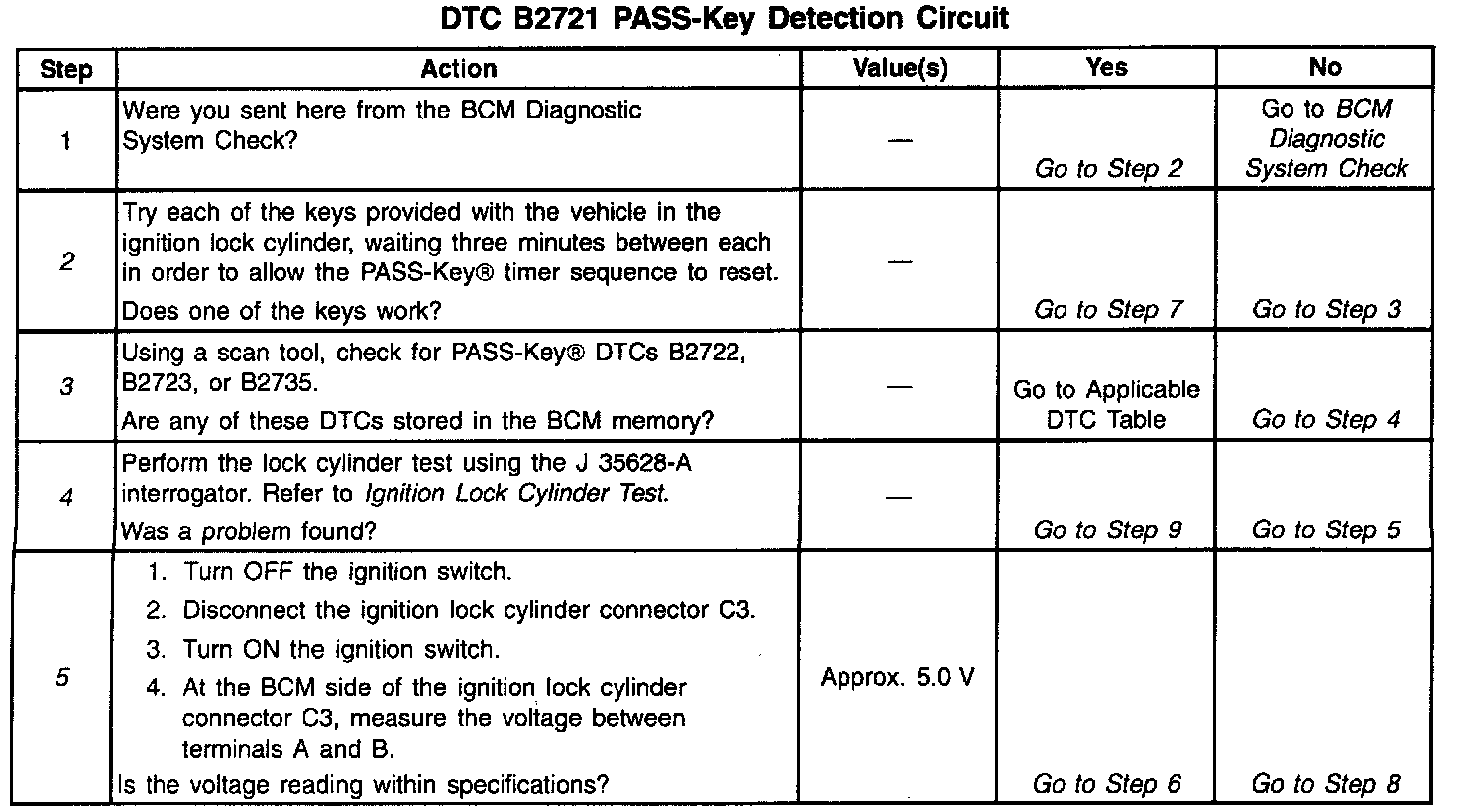 ^ The resistance level sampled at the BCM's PASS-Key(R) input circuit is one of fourteen valid but incorrect resistance ranges, signaling an invalid PASS-Key(R) detection.