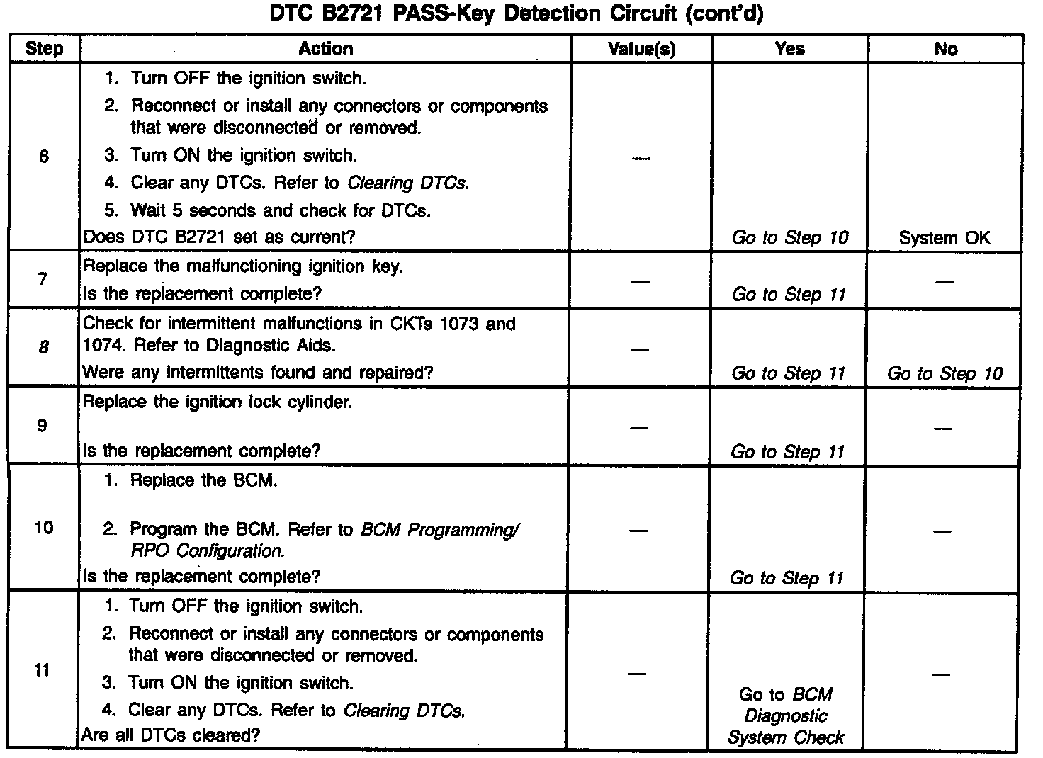 ^ While very unlikely, it is possible that extremely hot or cold ambient conditions may cause a DTC B2721 to set. To eliminate this possibility, perform the tests when the vehicle and the key are at room temperature. Clean the key resistor contacts of any foreign material. The foreign material could interfere with the key detection circuit and set a DTC.