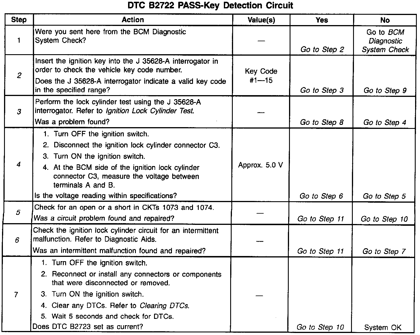 DTC B2722 PASS - Key Detection Circuit:
