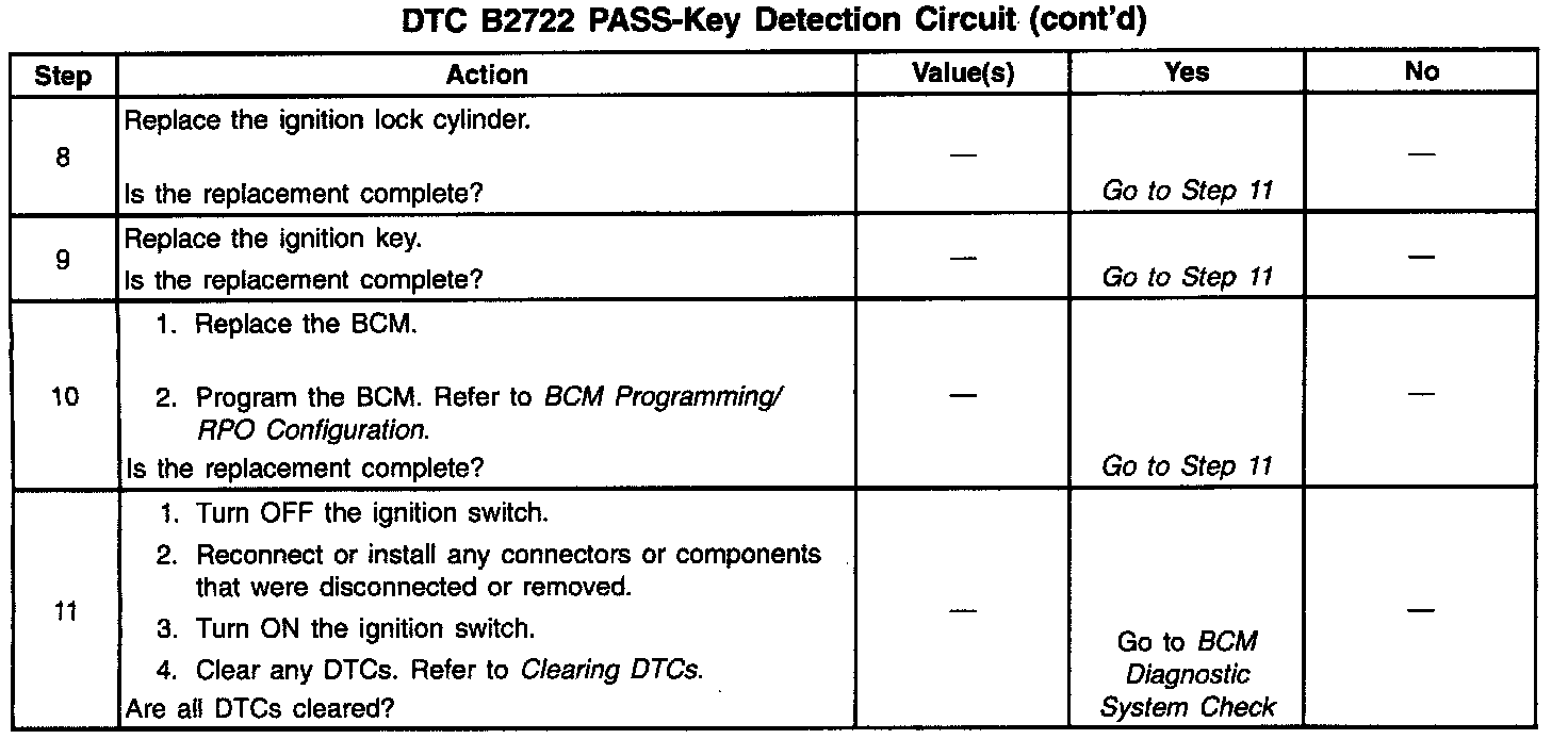 DTC B2722 PASS - Key Detection Circuit (Part 2 Of 2):