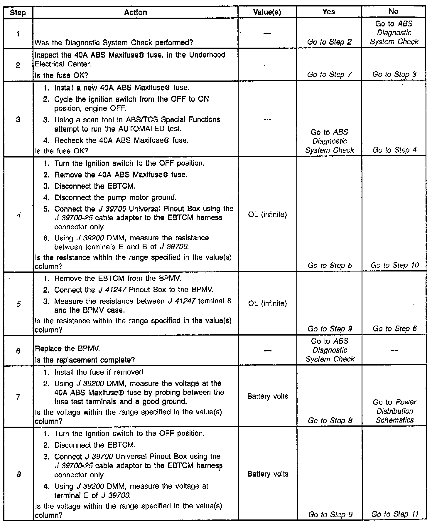 [5] Checks for an internal short in the BPMV.