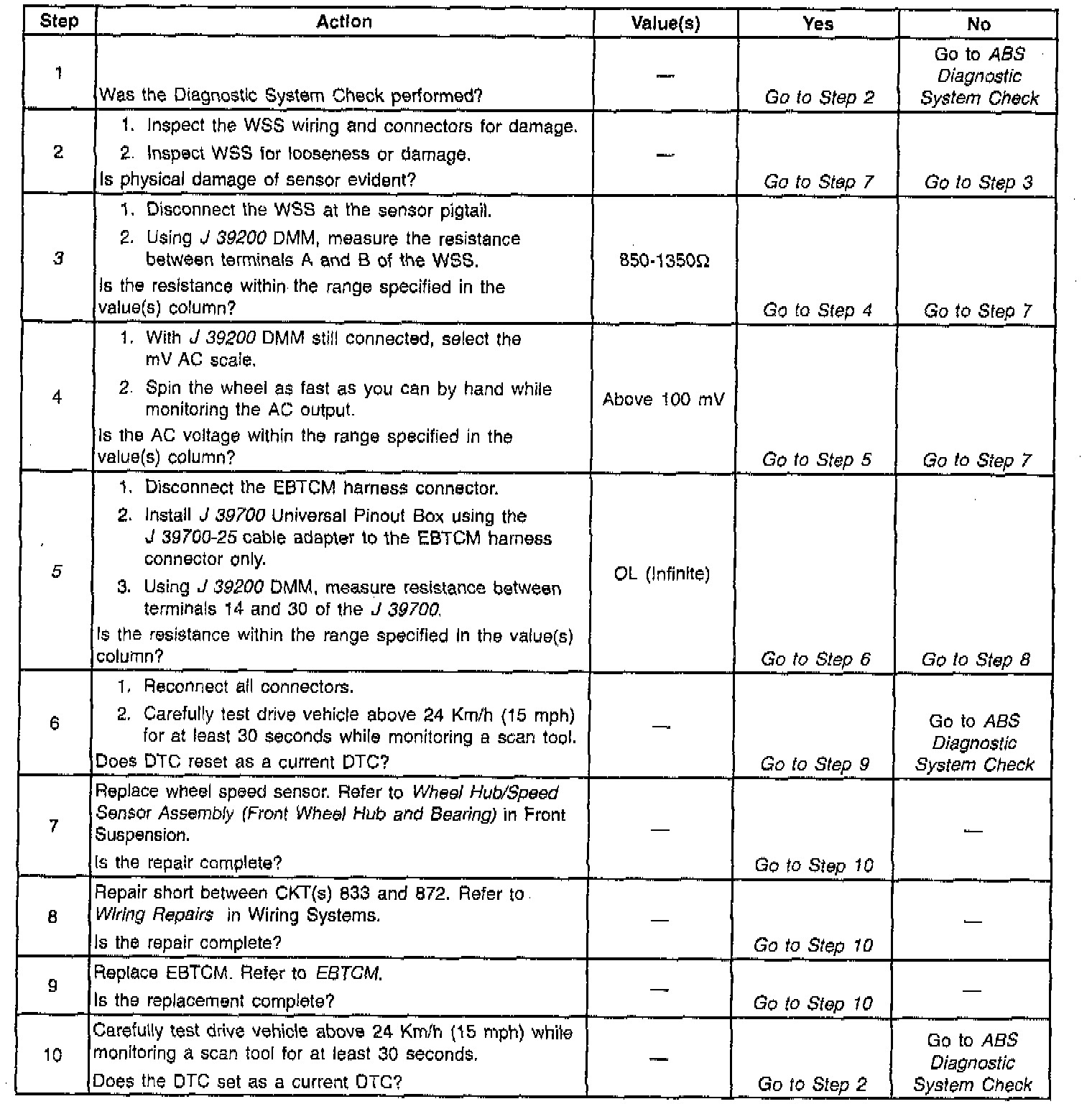 The numbers below refer to step numbers on the diagnostic table.