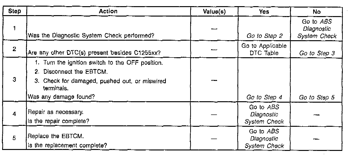 DTC C1255: EBTCM Internal Malf (ABS/TCS Disabled):