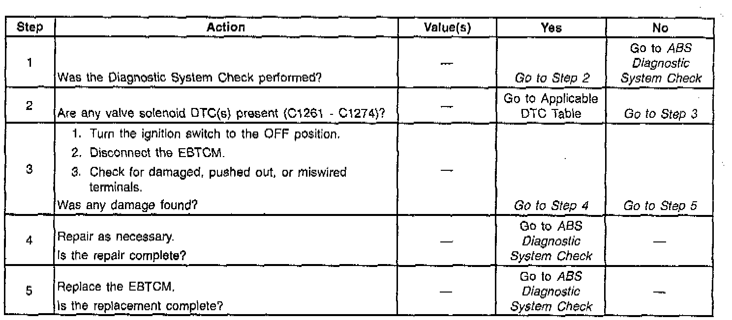 - DTC C1256xx can be set when there is a solenoid short to battery inside the BPMV. If DTC(s) C1261 - C1274 are set along with C1256xx then pursue the solenoid DTC(s) first).
