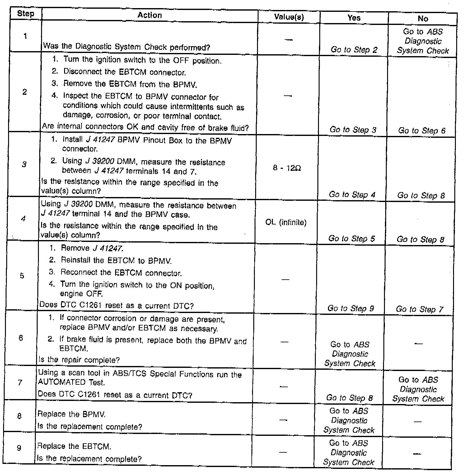 The numbers below refer to step numbers on the diagnostic table.