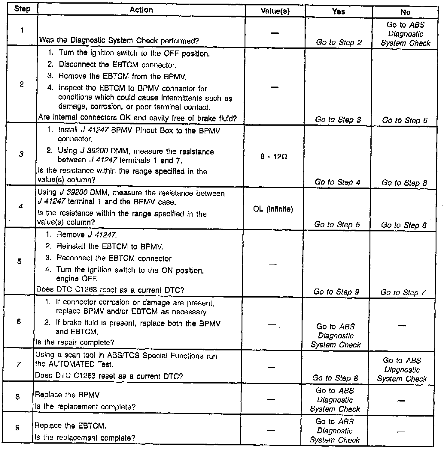 The numbers below refer to step numbers on the diagnostic table.