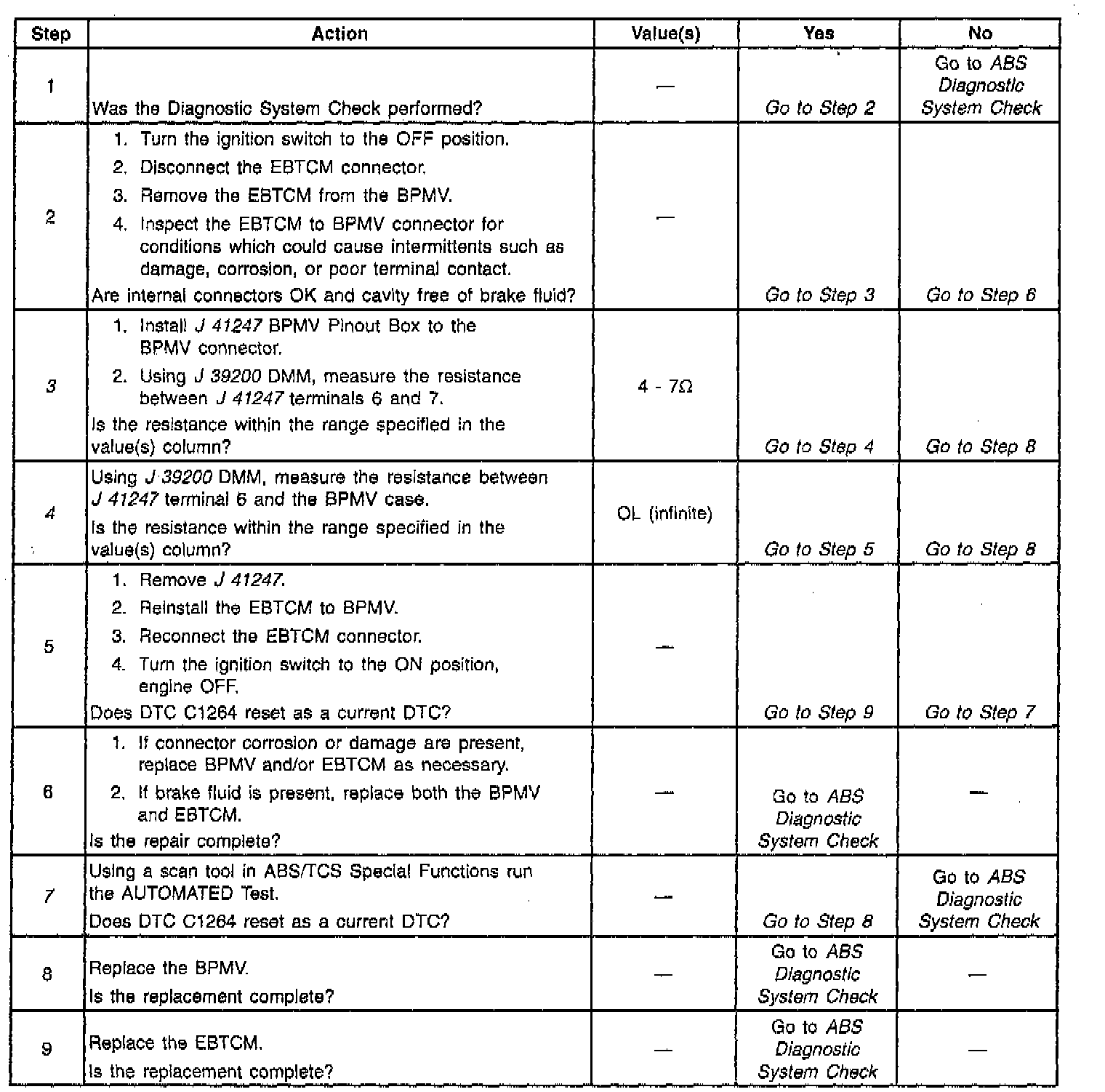 The numbers below refer to step numbers on the diagnostic table.