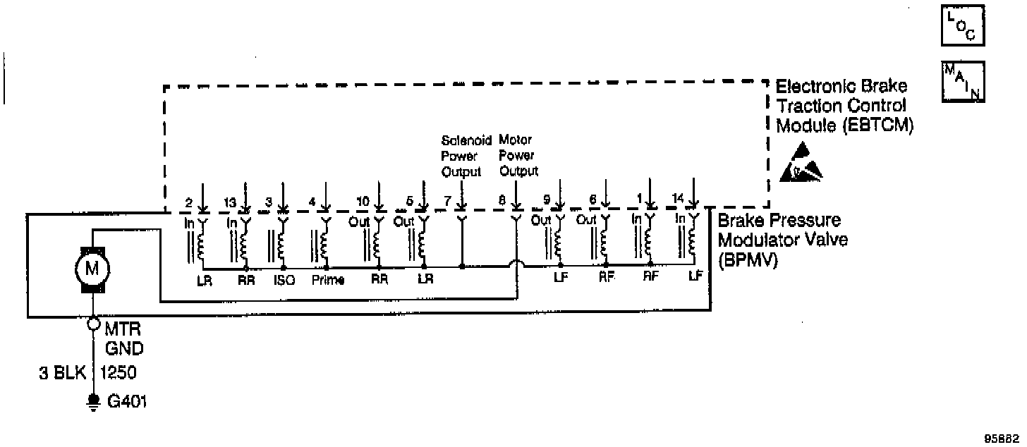 The Outlet valve solenoid circuits are supplied with battery power when the ignition is in the ON position. The EBTCM controls the valve functions by grounding the circuit when necessary.