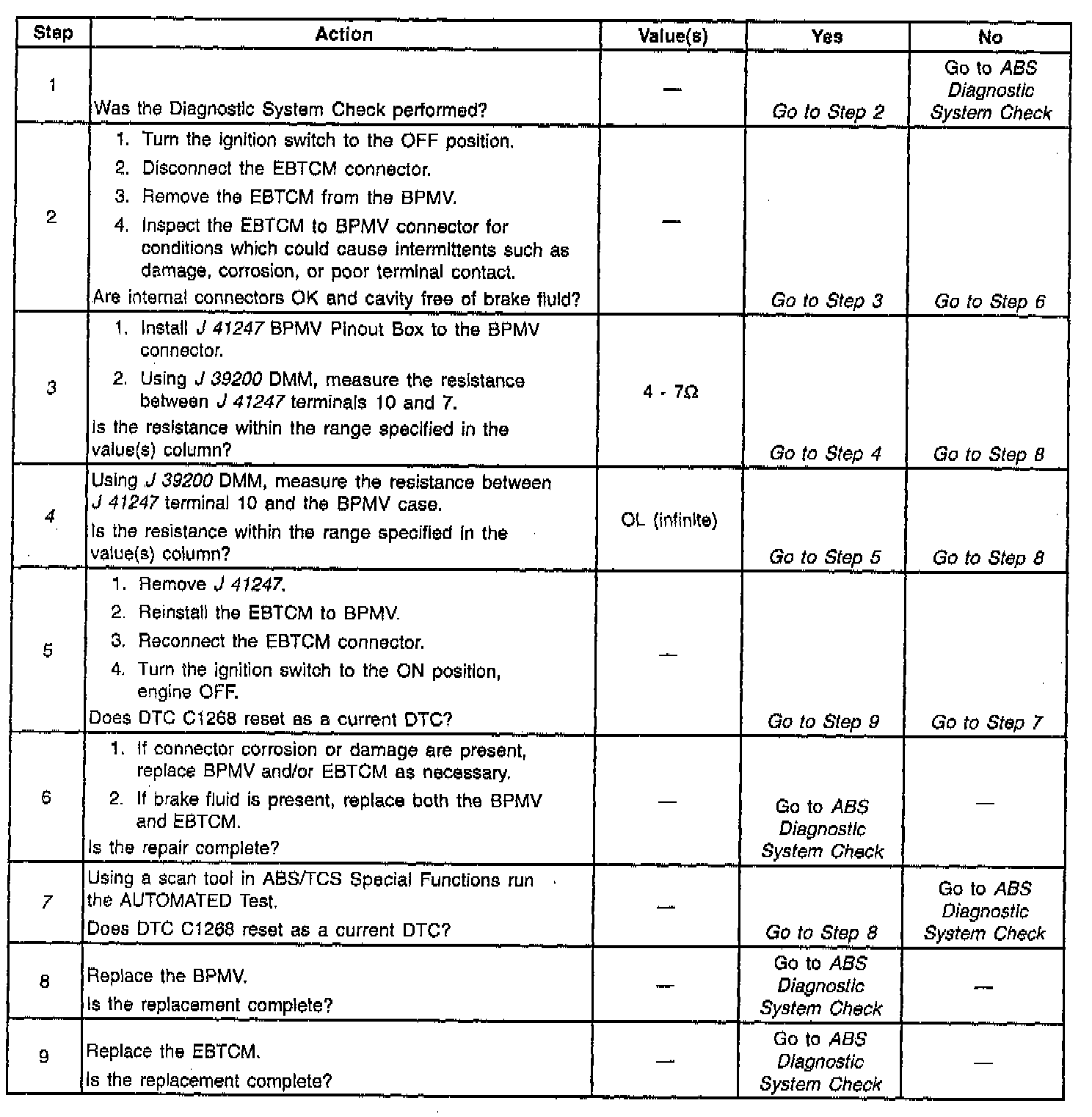 The numbers below refer to step numbers on the diagnostic table.