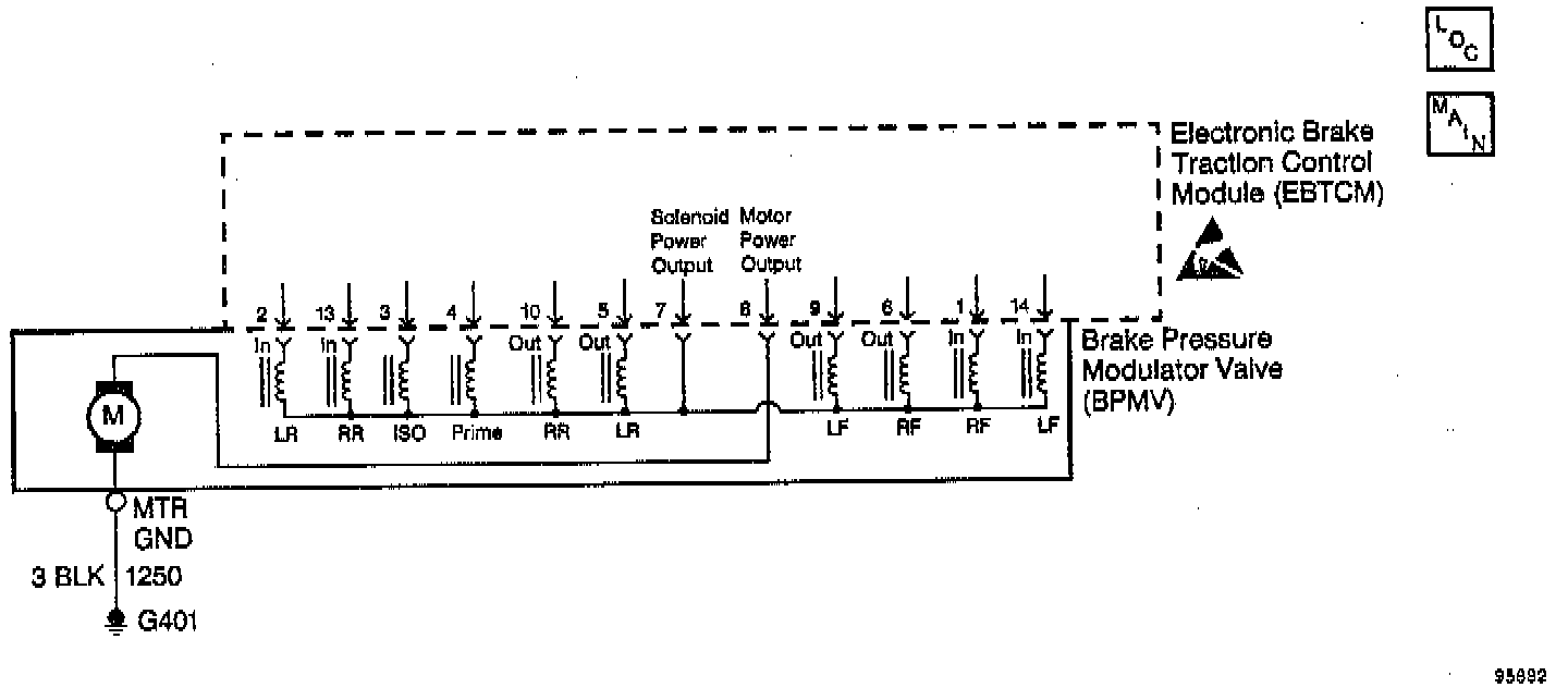 The Master Cylinder Isolation valve solenoid circuits are supplied with battery power when the ignition is in the ON position. The EBTCM controls the valve functions by grounding the circuit when necessary.
