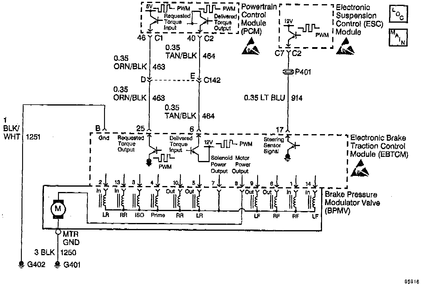 Traction Control is simultaneously controlled by the EBTCM and the PCM. The PCM receives a REQUESTED TORQUE request via a Pulse Width Modulated (PWM) signal from the EBTCM requesting the desired torque level for proper Traction Control system operation. The PCM supplies the pull up voltage.