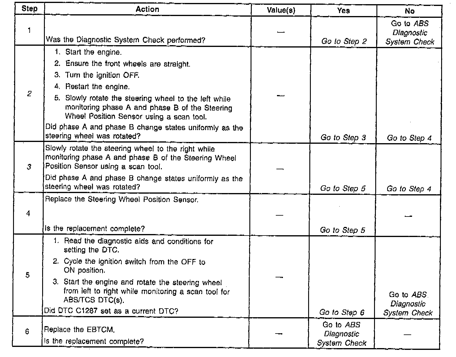 DTC C1287: Steering Sensor Rate Malfunction: