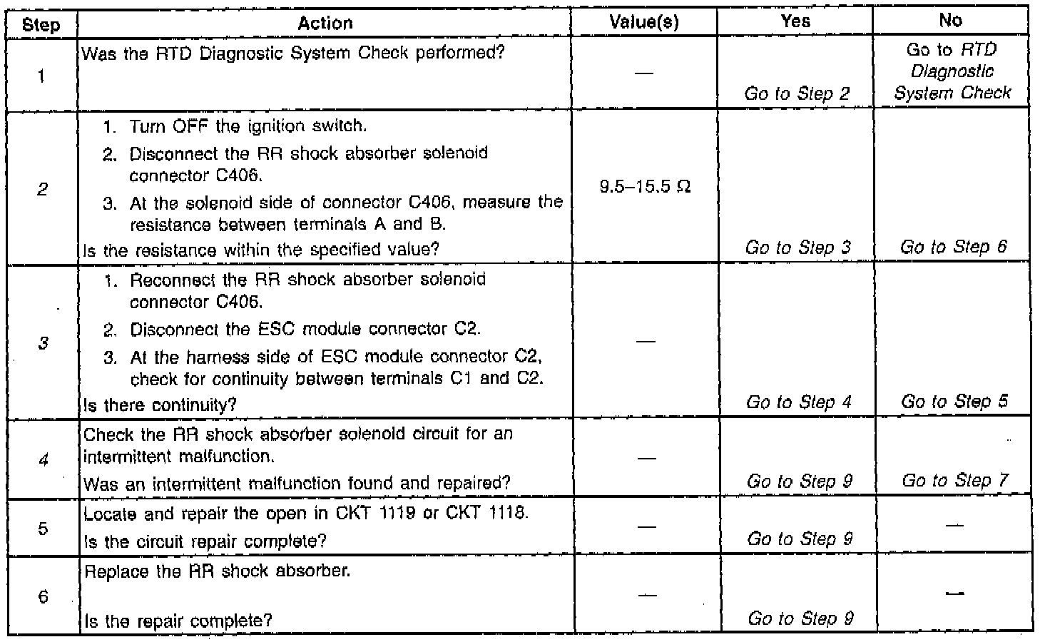 3. This step checks for an open in the RR shock absorber solenoid circuit.