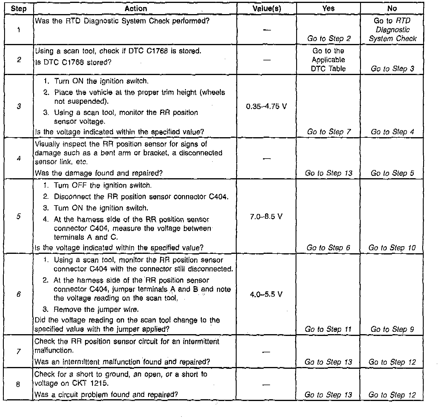 7. This step checks for an intermittent malfunction and requests a thorough inspection of the related RR position sensor circuit wiring and connectors.